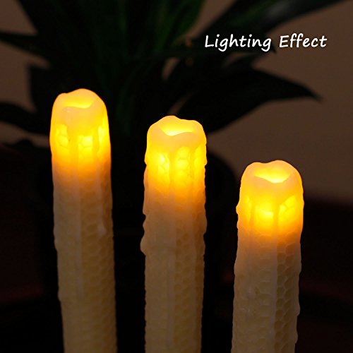 High QualityImpressions 12 Led Melted Dripping Taper Candles With Timer Function,HoneyComb Pattern,Pack of 3 (Ivory)