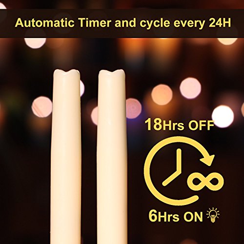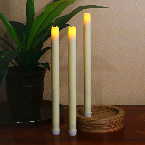High Qualitylameless Taper Candle 12 Dripless Real Wax Pillars with Timer Function, Battery Operated, Pack of 3 (Ivory)