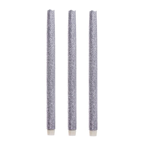High Quality Flameless Dripless Led Taper Candles with Timer Function, Battery Operated, Wedding Dinner Candle Set of 3 (Silver Glitter)