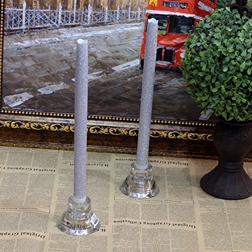 Size:12' ・・|・・ Color:Silvery Glitter Tired of Traditional Candles, concerned about children/Gravidae/ pets with real candles that Melt, Drip, Smoking, risk of fire when lighting. Then you・・ve come to the right place! Now the appearance of the FLAMELESS candle, designed to meet and surpass your expectations Create Your New Environment Now! ・b SAFE!!!Our candles are smoke-free, flame-free, and heat-free. Providing peace of mind and safety without the associated risks of traditional candles. Flameless Candle doesn't have an open flame and it doesn't heat up during usage. ・b Applicable Users: Anybody. Our candles provide perfect results for those suffering from COPD, smoke allergies or hypersensitive asthma. Very easy to use, these candles can be turned on and off by the flick of a switch. ・b Use For Occasions:Ambience, Holidays, Romance, Celebrations, Events, Mood, Restaurants & Bars, Churches, Weddings, Mantels, Dinning, Meditation, Gifts. About Led Taper Candle Material: unscented Power Source: battery-powered Type of Battery: 2x AA(Not included) taper sizes: 1.8 centimeter Dia 3 different sizes Adjustable latex rings for each taper Ring sizes: S: 1.9 -2.3 centimeter Dia M: 2.2 -2.4centimeter Di