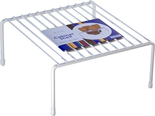 Color:White Say goodbye to clutter and hello to order with the Organized Living Cabinet Shelf. This popular shelving unit instantly doubles vertical space in kitchen cabinets, pantries, offices, hobby rooms and more. Made of durable coated steel so it won't bend or sag with heavy weight loads, allowing you to keep items neatly organized in tight spaces. Great for storing cups and plates or canned goods on top of each other for quick and easy access. The tight grate design gives you freedom to store smaller items without having them topple over.