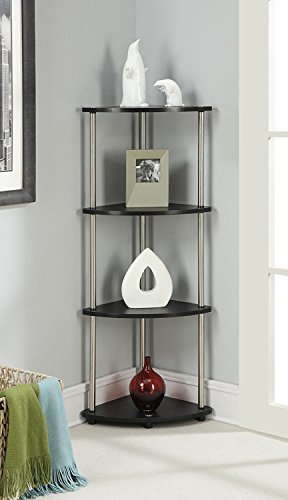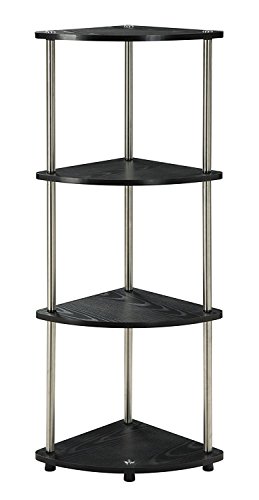 Color:Black Modern Styling is the essense of Designs 2 Go 4 Tier Black woodgrain Corner Shelf. Easy and Simple No Tools Assembly. Convenience Concepts brings you exciting and affordable furniture. Combining exciting designs with economical overseas manufacturing to bring you the finest in sensible contemporary furniture. Focusing on R-T-A Entertainment, TV, Storage, and Accent furniture.