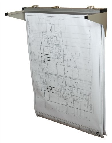 High Quality Drop - Lift Wall Rack for Blueprints - Plans, Sand Beige with 12 File Hanging Clamps