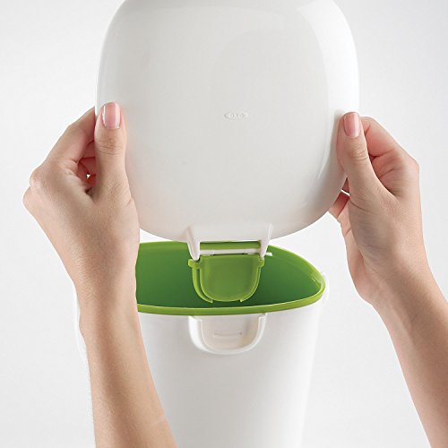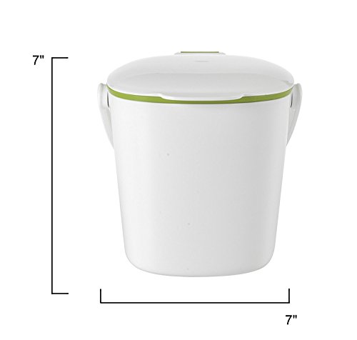 Color:White Product Description Stop throwing food scraps in the garbage! Designed with the home cook in mind and attractive enough to live on the countertop, the Oxo Good Grips Compost Bin stores food scraps until they can be transferred to an outdoor composter. The flip-up lid can be opened and closed with one hand. Smooth interior walls prevent food and liquids from building up and make clean up simple. The sturdy handle makes it easy to carry the filled bin outside while the contoured bottom and removable lid keep emptying simple. Brand Story By