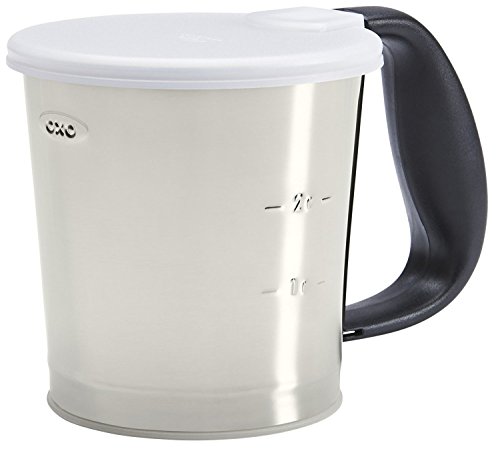 Product description Perfectly Sifted Flour with Little EffortThe OXO Good Grips Sifter was designed to make sifting easier and faster, and baking that much more enjoyable. The Sifter has no awkward levers to pull or cold steel handles to squeeze. Instead, it features a comfortable handle that fits perfectly in your hand. With a slight shake side to side, the sifting mechanism is activated and, with little effort, you have perfectly sifted flour. The top and bottom lids keep flour fresh and the inside of your cupboards clean.OXO Good Grips Flour Sifter: Wide, comfortable, ergonomic handleSifter shakes side to side with one-handed operationCup and gram measurements listed Lids seal the top and bottomDimensions: Measures 4.6 in. x 6.5 in. x 4.5 in.A Closer Look: The OXO Good Grips Sifter is so much easier to use that you will look forward to recipes that call for sifted ingredients. Simply shake side to side for sifted flour or powdered sugar. It has a comfortable, ergonomic handle.Take Care: Dishwasher safe.About the Brand: OXO was born in 1990, the first group of 15 OXO Good Grips kitchen tools was introduced to the U.S. market. These ergonomically-designed, trans generational tools set a new standard for the industry and raised the bar of consumer expectation for comfort and performance. From the Manufacturer The OXO Good Grips flour sifter was designed to make sifting easier and faster, and baking that much more enjoyable. The sifter has no troublesome awkward levers to pull or cold steel handles to squeeze; instead, it features a comfortable handle that fits perfectly in your hand. With a slight shake side to side, the sifting mechanism is activated and with little effort you have perfectly sifted flour. The top and bottom lids keep flour fresh and the inside of your cupboards clean. The OXO Good Grips flour sifter is so easy to use that you'll look forward to recipes that call for sifted ingredients.