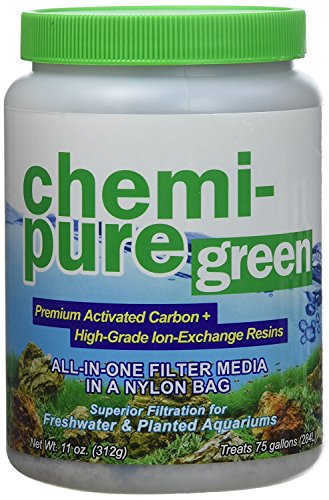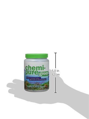 Size:11 oz Chemi-pure Green is the ultimate all-in-one filtration media for freshwater planted aquariums. Conveniently packaged in an easy to use nylon bag, Chemi-pure Green is formulated to offer superior filtration without removing essential nutrients. Chemi-pure Green combines the highest grade of low dust pelletized activated carbon with premium ion exchange resins to produce a balanced formula optimized for the health and well-being of your plants while delivering crystal clear water. The proprietary formula significantly reduces tannins, odors, toxins, organic compounds and medications. Chemi-pure Green・・s high-capacity pelletized activated carbon has very low ash content and rinses clear quickly. The finest laboratory grade resins are incorporated to rapidly remove organics and tannins from your aquarium water while helping to stabilize pH and maintain macronutrient levels. Chemi-pure Green・・s unique formula is the finest planted aquarium filtration media available. For a healthy, stable, crystal clear planted aquarium use Chemi-pure Green!.