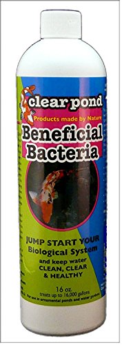 The Clear Pond Beneficial Bacteria formula has been developed to be beneficial to pond life and is non-pathogenic and non-toxic. Clear Pond Beneficial Bacteria is a blend of enhanced patented bacteria cultures developed for their ability to produce large quantities of digestive enzymes in an aquatic environment. Beneficial bacteria are important for a clean healthy pond. When used on a regular basis Clear Pond's bacterial formula helps to promote a healthy balance pond that will naturally reduce the effects of string algae, pea soup green water and sludge that usually builds up at the pond bottom.