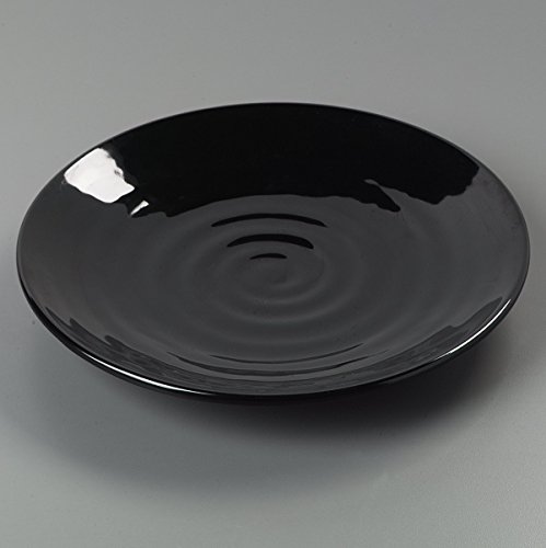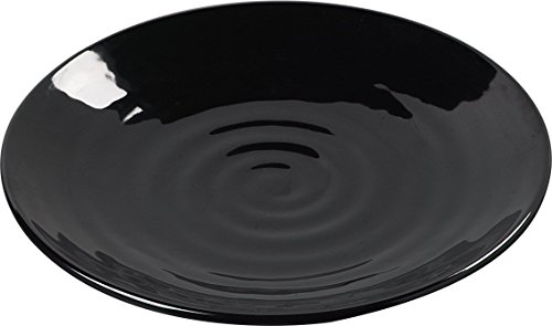 - Black round dinner plate offers the look and feel of hand-created pottery with the durability of melamine resin for long-term use