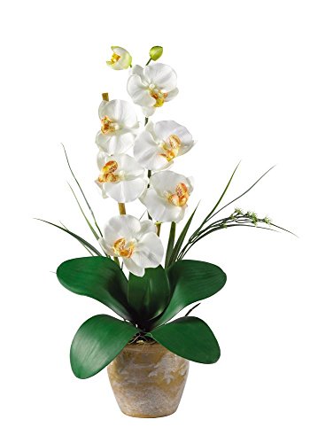 Color:Cream Bursting with color and personality the Phalaenopsis is perhaps the most popular variety of all the orchids. Six lively blooms and two buds are complimented by genuine bamboo, which enhances the silk plant's authenticity. Featuring nearly natural leaves, moss and roots, this familiar favorite is sure to charm the masses.