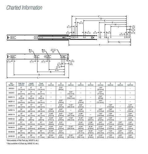Size:8-inch 100 lb. class full extension drawer slide features an ergonomically designed push-in lever release for easy drawer removal. The reversed flex tabs allow improved slide performance with side clearance tolerance adjustments. 8400 is an unhanded design with traditional and 32mm hole patterns that supports industry standards. Designed for use on box or file drawer applications up to 24-inches wide