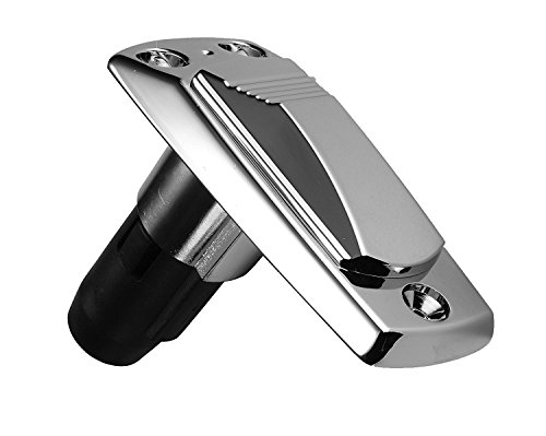 This highly used base is constructed of die-cast Zamak chrome finish. Swivel cover protects the socket when light is stowed away. Socket is keyed to prevent incorrect insertion of pole light. Provides a 2-pin socket and a 12 degree angle and installs on narrow gunwales or deck areas. Completely non-corrosive, features contacts which are nickel-plated to resist corrosion and multi-crimped for durability, and wire leads tinned for corrosion resistance. Three countersunk holes for installation fasteners. Includes 7-1/2" hard wire leads for connection to 12 VDC power supply. Dimensions: 4" long x 1-5/8" wide. 1-3/8" diameter installation hole size. Light base use with pole light 911339 frosted globe: 5110 Series anti-glare: 5300 Series bi-color: 910851 and 5091 Series