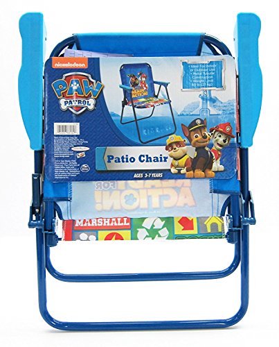 The Paw Patrol Patio Chair has colorful character graphics and is great for indoors or outdoors. Sturdy metal tubular construction. Folds for easy storage. Each chair has a safety locking mechanism. No assembly required.