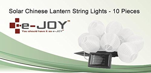 Color:10 PC White Solar Lantern String Lights Specifications: 1. Lantern string lights: 10 white solar LED lantern string light 2. Total length: Approx. 12.5 feet 3. Battery: Built-in 1.2v 600mah in-cd AA rechargeable battery 4. Diameter of the assembled lanterns are 2.95 inch, LED string on 12.5 feet string, 7.8 inch spacing between lantern with 6.5 feet lead wire from first light to solar panel 5. Charging time: 6-8 hours. 6. Working time: Approx. 8-12 hours notice: Please report to amazon for unauthentic e-joy product 1) the solar panel is automatically working. It gives out light when the environment is dark, 2) and when under sunshine, it will be charging automatically, 3) but all of the above conditions only work before you set the button to an on status. 4) in cloudy or rainy days, the battery cannot get sufficient power supply in daytime. It needs to be fully charged in a sunny day. 5) it's a waterproof string lights, but to maintain a long using life, please do not use it in the water. Package: 1 solar LED string light with 10 lantern 1 2v/65 mAh solar panel with garden spike 1 user manual.