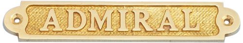 Product description ツIdeal for posting on a boat, in a boathouse, or any nautical themed room, this solid brass Admiral sign 5 inch is a must have for any commander in chief. Handcrafted from solid brass, with stylish brass framing, this beautifully shining sign has a classy nautical appeal with bold and clear lettering on a solid brass face.NOTE: Wall mounting hardware not included. Elegant Solid brass design Handcrafted with precise detail Textured solid brass background Sign requires two screws for easy mounting (not included) From the Manufacturer Ideal for posting in a boat, boathouse, or any room in the home or office, this solid brass Admiral sign 5' clearly lets everyone know that you are in charge. Handcrafted from sailing's traditional brass, with stylish brass framing, this shining sign has a classy nautical appeal, with bold and clear lettering on a solid brass face.