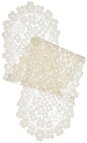 Size:14 by 53'x53' ツ|ツ Color:Ecru Heritage Lace Dogwood 14' x 53' Ecru Runner. These intricately-detailed table textiles have a lovely all-over motif of stylized dogwood blossoms set against a sheer lace background. The structured border is ringed with dogwood blossoms creating a very detailed cut edge. Made in U.S.A. A beautiful setting for those favorite tabletop treasures. Useful and appealing home decor items that mix or match. Alluring elegance, reminiscent of grand estates and gardens.