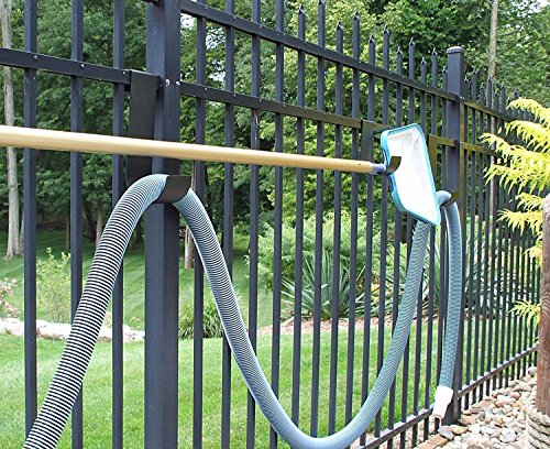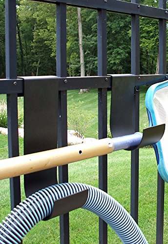 Product Packaging:Frustration-Free Packaging Organize your Swimming Pool Area, Deck or Backyard. Great for hanging Pool Hoses and Brushes, Towels, Toys, Garden Hose and more. Made of Solid Aluminum with a Textured Powder Coat Finish. Fits 3/4-Inch to 1 1/8-Inch wide fence and railing types; including wood, vinyl, aluminum/steel and chain link. No tools or fasteners needed. DON'T DAMAGE YOUR EXPENSIVE FENCE. Installs in seconds - just place over the fence and adjust to fit. Made in the USA.
