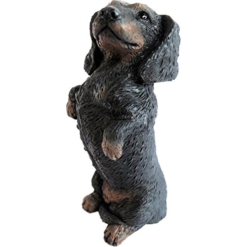 Size:Small Size ツ|ツ Style Name:Black Dachshund - Sitting Pretty Sandicast truly captures the spirit of man's best friend like no other company, making them the premier manufacturer of hand-cast animal sculptures. Internationally renowned San Diego artist Sandra Brue has been bringing sculptures to life for over 30 years. She founded Sandicast in 1981 and her hand-cast, hand-painted animal replicas quickly became famous for their stunning realism and incredible attention to detail. Queen Elizabeth and President Clinton are just a few of the many celebrities that have Sandicast animals. Sandra has sculpted more than 400 animals; the Sandicast Collection includes everything from dogs and cats to exotic wildlife and Christmas ornaments. Each piece is hand-cast and hand-painted and virtually comes to life when sparkling glass eyes are inserted. What makes Sandicast unique is the fact that there are not only several sculpture sizes from which to choose (Life Size, Companion Size, Original Size, Mid-Size and Small), but also a variety of animal poses available within each breed of dog - Standing, Sitting, Sitting Pretty, Lying, Lying Side, Lying Back and Crouching - each with its own distinctive expression guaranteed to make pet owners everywhere say, 'Wow! That looks just like MY dog!' Sandicast invites you to discover their exquisite collection of hand sculpted animals available on Amazon.