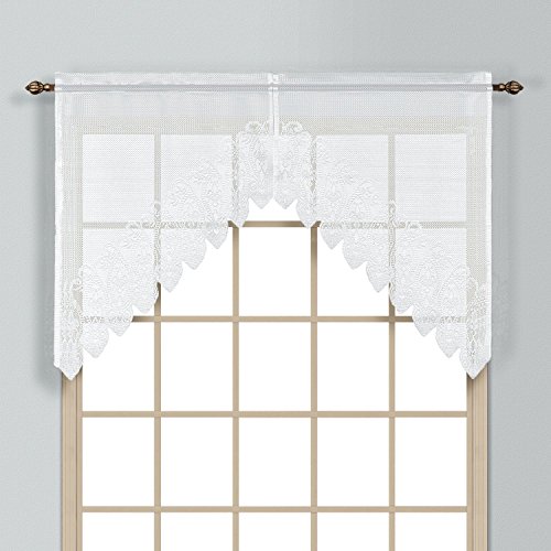 High Quality Valerie Lace Sheer Swags, 52 by 38-Inch, White, Set of 2