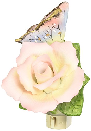 High Quality 2127 Fine Porcelain Lighted Butterfly/Peace Rose Night Light, 3-Inch