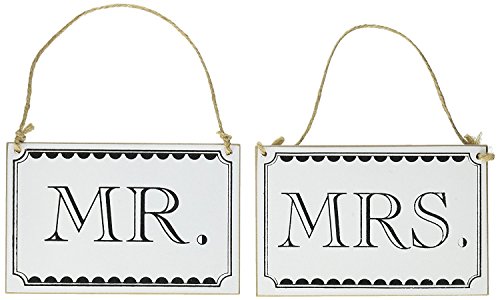 High Quality Mr. & Mrs. Wooden Vintage Signs with Twine, White