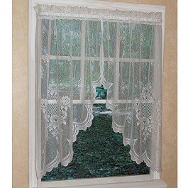 Cameo Rose has a traditional lace motif that is updated with mid-weight yarns and an open airy design. Cameo Rose lace has a beautifully textured ground with a scalloped bottom and decorative floral selvedge sides. A blend of large and small rose cameos mix with mini bouquets to keep things current. Cameo Rose is available as a: valance, swag, tier and panel.
