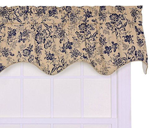 High Quality Palmer Floral Toile Lined Duchess Filler Valance Window Curtain, Navy
