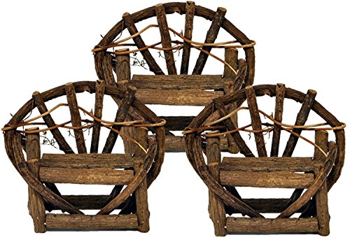 Size:3 PACK Place your rustic looking vine bench next to a brook trickling with a flow of water. This bench is reminiscent of hobo art gardens where good folk find a cozy place to sit. Enjoy the imperfections of a natural wood handcrafted item. (Note: Miniatures are small items that pose potential choking hazards to small children. They are not toys. Any accessories pictured are not included, for illustrative purposes only.)