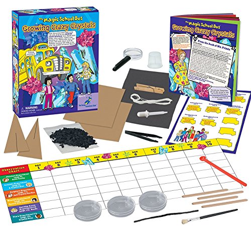 Ms. Frizzle and her students take Young Scientists on a wild ride by growing crazy crystals. Young Scientists explore sugar and salt crystals, grow rock candy, make a crystal star, create crystal art, grow a salt crystal garden, make Epsom salt crystals, create a geode, grow a crystal tree, and much, much more! This crystalizing kit comes with an observation chart to keep track of the crazy crystal growth. Seatbelts everyone! Get ready to Grow Crazy Crystals!