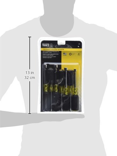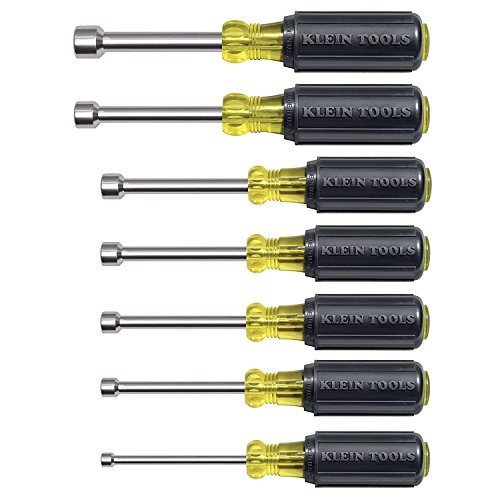 The Klein Tools 7-Piece Magnetic Nut Driver Set features the most popular nut driver sizes and is perfect for a wide variety of applications. These nut drivers have magnetic tips and full hollow shafts that slide easily over long bolts or studs. Klein's patented Tip-Ident helps quickly identify the nut driver and size in a tool bag or pouch. Full hollow shaft designed with Rare Earth magnetic tip facilitate work on long bolt applications*. Set contains Cat. No: 630-3/16M, 630-1/4M, 630-5/16M, 630-11/32M, 630-3/8M, 630-7/16M, 630-1/2M. Cushion Grip handles allow for greater torque and comfort. Tip-Ident quickly identifies nut driver hex orientation and size by color coding the handle ends so you can easily engage the nut driver with the fastener. Internal flanges provide solid, twist-resistant shaft anchor. *3/16-Inch does not have hollow shaft. For more than 160 years, Klein Tools has manufactured premium-quality, professional-grade hand tools that deliver the performance, durability and precision needed to get the job done right. Our family of engineers, workers and craftsman continue to put six generations of expertise into every tool we create by using only the highest quality materials, superior workmanship, and keeping manufacturing as close to home as we can. Klein isn't just the name of our company, it's also our family name. And since we're an American company that's family-owned and family-run, you know you can count on us to be here tomorrow. Klein Tools doesn't just make great products, we make great products that stand up to the demands of the professionals who use them every day ... Since 1857.