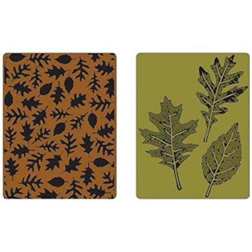 SIZZIX-Texture Fades Embossing Folders by Tim Holtz Alterations. These folders will add a deep bold emboss to cardstock in just seconds! Folders are compatible with Sizzix BIG kick Big Shot Vagabond and Texture Boutique machines (not included). This package contains two folders: 5-3/4x4-1/2x1/8 inch. All folders will also fit A2 Cards. Design: Textured Leaves Set. Designer: Tim Holtz. Imported.