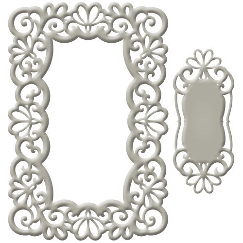 A rectangular shape with beautiful floral loopy design. Nest border 1 die to create a pierced edge opening in the center for a wonderful frame. Includes a complimentary tag accent. Spellbinders Shape abilities frames cut, emboss and stencil with a single die template. Approximate sizes): accent: 1.25 x 4 in border 1: 2.25 x 4.625 set: 4.25 x 6.625 in border 2: 4.625 x 6.25 in