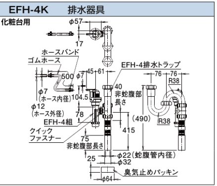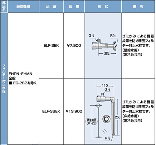 - フィルター付止水栓(壁給水用)ELF-3EK+排水器具(EFH-4K)セット