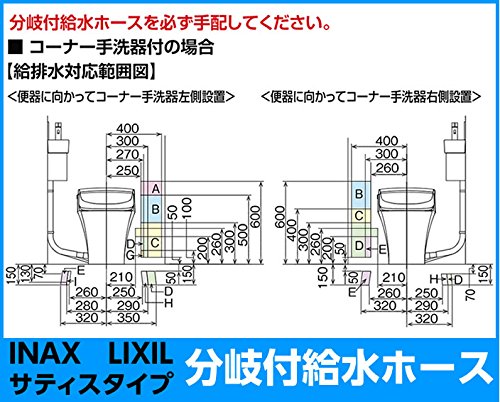 INAX LIXIL・リクシル トイレ 分岐付給水ホース サティスSタイプトイレ(コーナー手洗器付用) 壁給水 1,000mm【A-8377-100】【A8377100】