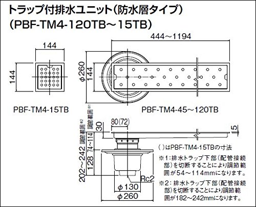 縦引きトラップ 寸法:144×144×242 INAX LIXIL・リクシル 浴室 トラップ付排水ユニット(目皿、施工枠付)【PBF-TM4-15TB】 防水層タイプ 【PBFTM415TB】