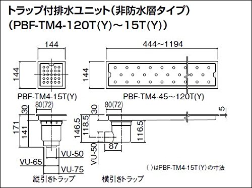 縦引きトラップ 寸法:594×144×171 INAX LIXIL・リクシル 浴室 トラップ付排水ユニット(目皿、施工枠付)【PBF-TM4-60T】 非防水層タイプ 【PBFTM460T】