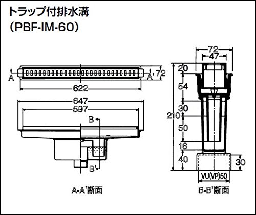 寸法:622×72×210 INAX LIXIL・リクシル 浴室 トラップ付排水溝(目皿、施工枠付)【PBF-IM-60】 【PBFIM60】