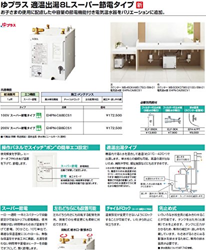 INAX・LIXIL 電気温水器【EHPN-CA8ECS1】 ゆプラス 適温出湯8L(洗面用) スーパー節電タイプ 100Vタイプ パブリック向け