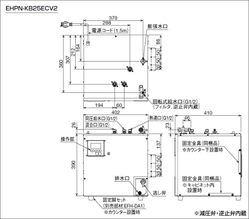INAX・LIXIL 小型電気温水器【EHPN-KB25ECV2】 ゆプラス 出湯温度可変25L(キッチン用) スーパー節電タイプ 200Vタイプ パブリック向け