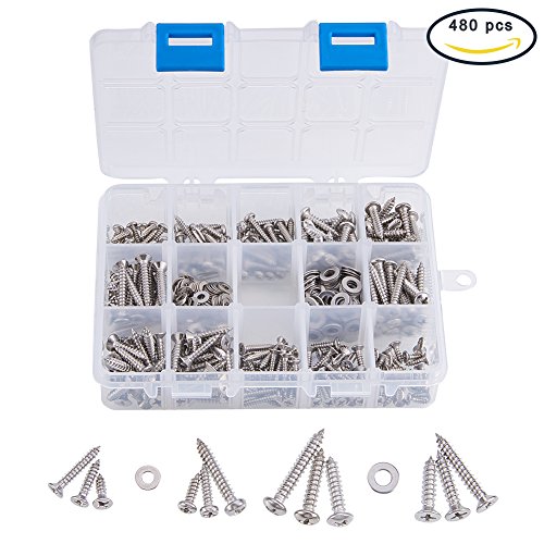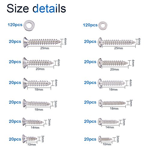 INCREWAY 480pcs M3 M4ステンレス鋼プラスのフラット/ラウンドヘッドのタッピングねじフラットワッシャー詰め合わせキット
