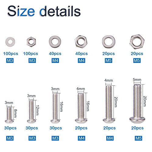 INCREWAY 470pcs M3 M4 M5 304ステンレススチール ボタンヘッド六角穴付ボルト ナッツ ワッシャー Assortmentキット