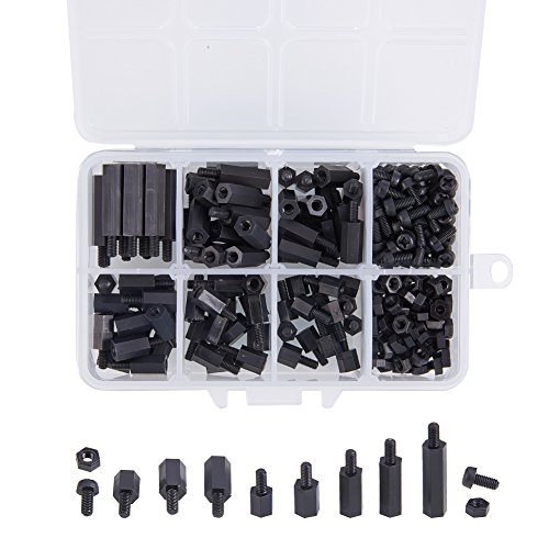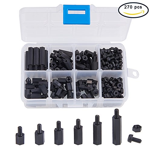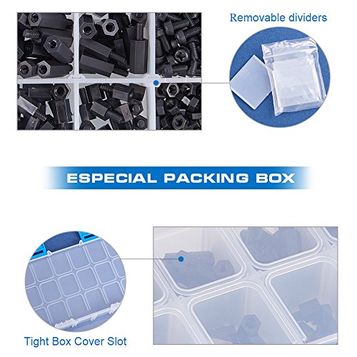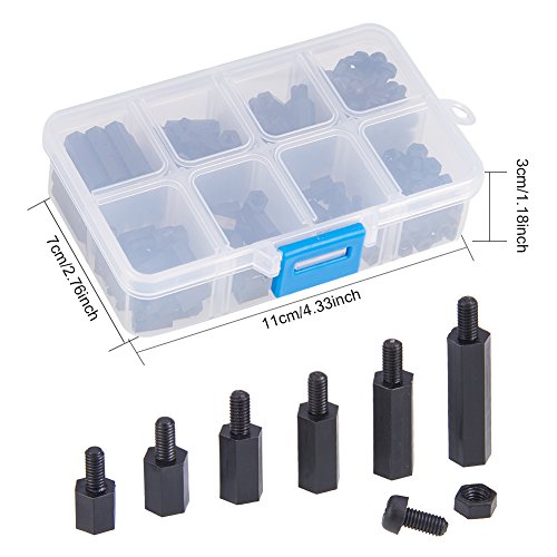 INCREWAY 270pcs黒いナイロンM3六角柱オス-メススタンドオフスペーサねじナットキットボックス
