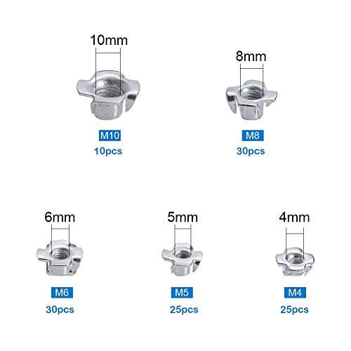 INCREWAY 120pcs 亜鉛メッキ 爪付ナット Tナット Assortmentキット:M4 M5 M6 M8 M10