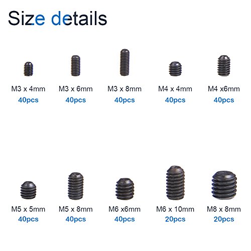 INCREWAY 360Pcsアレンヘッドソケット六角Grub Screwセット詰め合わせキット内部六角ドライブとカップポイント、炭素鋼、メトリック(m3 / 4/5 / 6/8)
