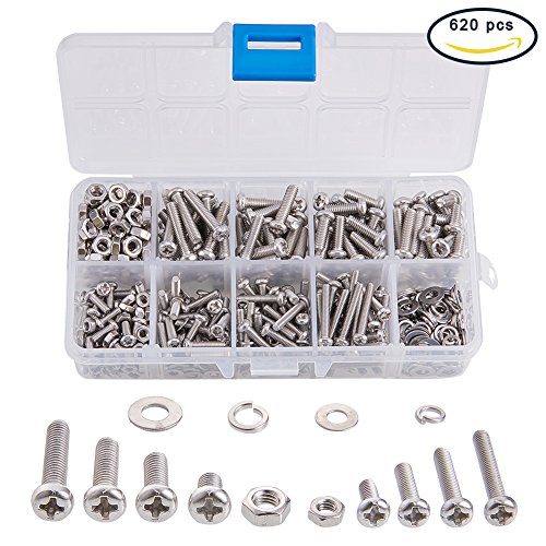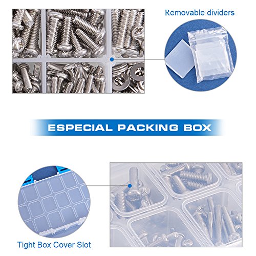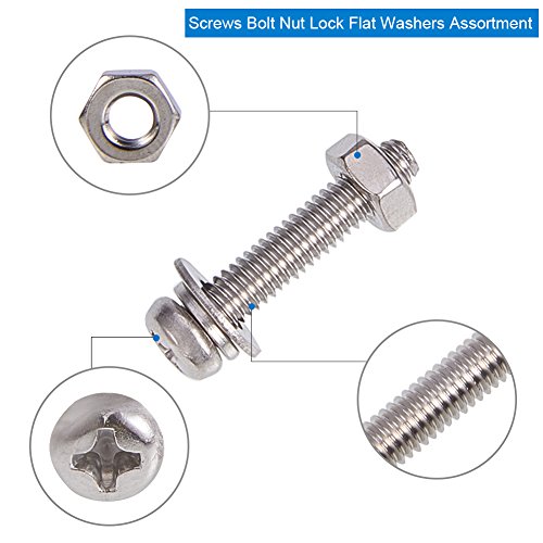 INCREWANY 620pcs M3 M4 パンヘッドフィリップス 304ステンレススチール ねじナットロックフラットワッシャー Assortmentキット
