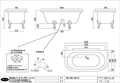 〔INK-OMS-803-OI〕 W1500 猫足バスタブ(追い炊き機能付) 猫脚/プッシュ式排水栓:3種類 【セット内容】 猫足バスタブ本体(排水栓付属) 塩ビ製排水ジャバラパイプ 循環器:T41-50 13(SANEI一口循環接続金具) 無極性タイプです。 往側と戻側の指定がありません。 材質 PPS樹脂 〇本体サイズ:幅150×奥行75×高62cm 【重量:約37.0kg】 【水量:約280L】 【備考】 1.オーバーフローは無しのタイプとなります。 2.猫脚・プッシュ式排水栓はシルバー(銀)、ゴールド(金)、ブラック(黒)の3色からお選び頂けます。 3.浴槽カラー(内側、外側)は緑、赤、黒に変更可能です。追加料金は税別30,000円となります。 4.足は取り外し可能ですが、再度取り付けるときは高さ調整が必要です。 5.排水栓は蓋を押下げして開閉させるプッシュアップ式となります。 6.シャワー・蛇口は別売りとなっております。 7.排水パイプ(塩ビ製ジャバラパイプ)は付属しております。 8.排水トラップは付属しておりませんので、ご注意下さい。 9.在庫が無い場合、ご注文から納品まで約1ヶ月から1ヶ月半お待ち頂く場合がございます。 ■ご不明な点などございましたらお気軽に当社までお問い合わせ下さいませ。