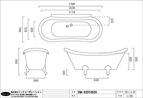 〔INK-0201002H〕 W1760 猫足バスタブ 猫脚・プッシュ式排水栓:シルバー(銀)・ゴールド(金)2色 【本体サイズ:W1760*D710*H760】 【セット内容】 猫足バスタブ本体(排水栓付属) 塩ビ製排水ジャバラパイプ 〇本体サイズ:幅176×奥行71×高76cm 【重量:約45.0kg】 【水量:約290L】 【備考】 1.オーバーフローは無しのタイプとなります。 2.猫脚・プッシュ式排水栓はシルバー(銀)、ゴールド(金)、ブラック(黒)の3色からお選び頂けます。 3.浴槽カラー(内側、外側)は緑、赤、黒に変更可能です。追加料金は税別30,000円となります。 4.足は取り外し可能ですが、再度取り付けるときは高さ調整が必要です。 5.排水栓は蓋を押下げして開閉させるプッシュアップ式となります。 6.シャワー・蛇口は別売りとなっております。 7.排水パイプ(塩ビ製ジャバラパイプ)は付属しております。 8.排水トラップは付属しておりませんので、ご注意下さい。 9.在庫が無い場合、ご注文から納品まで約1ヶ月から1ヶ月半お待ち頂く場合がございます。 ■ご不明な点などございましたらお気軽に当社までお問い合わせ下さいませ。
