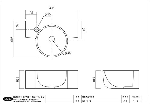 洗面ボウル 陶器 オンカウンタータイプ 小サイズ 幅40.5cm INK-TR4413