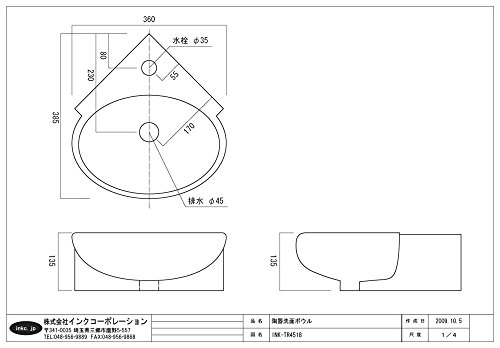 INK-TR4518 オンカウンター/壁掛けタイプ 小サイズ 陶器製 洗面ボウル