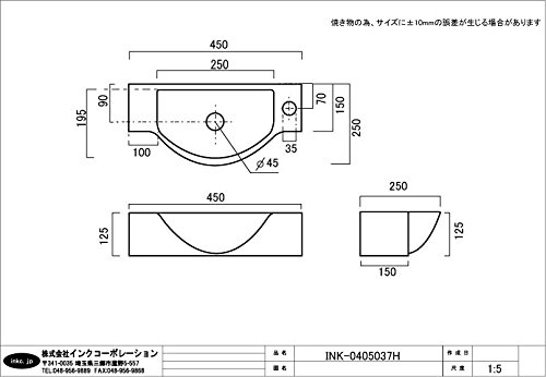 洗面ボウル 陶器 オンカウンタータイプ 小サイズ 幅45cm INK-0405037H
