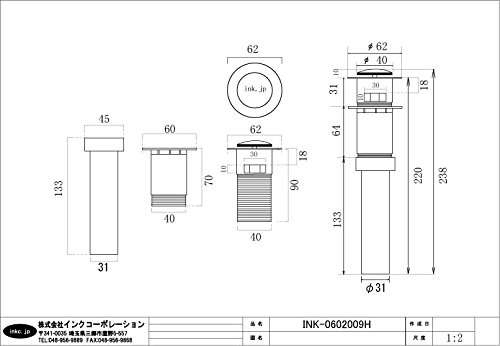 INK-0602009H(オーバーフロー有) プッシュアップ式排水栓 32mm ブラック(黒)
